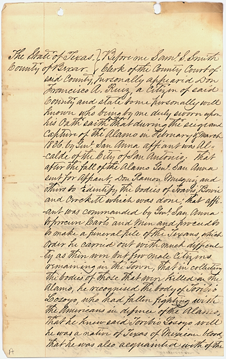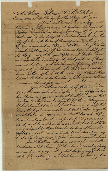 A great example of a Tejano Alamo Defender, Toribio died defending his home and received numerous land grants for his service.