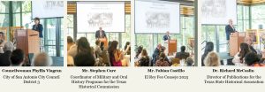 At noon, guests gathered for the luncheon and presentations. Our program featured inspiring words from community leaders and representatives of statewide organizations, including City of San Antonio City Council District 3 Councilwoman Phyllis Viagran, Fabian Castillo who is the current El Rey Feo Consejo, Stephen Cure from the Texas Historical Commission (THC), and Dr. Rick McCaslin from the Texas State Historical Association (TSHA). They each played an important role in emphasizing the lasting impact of Tejano contributions on Texas history and the importance of collaboration in keeping those legacies alive.